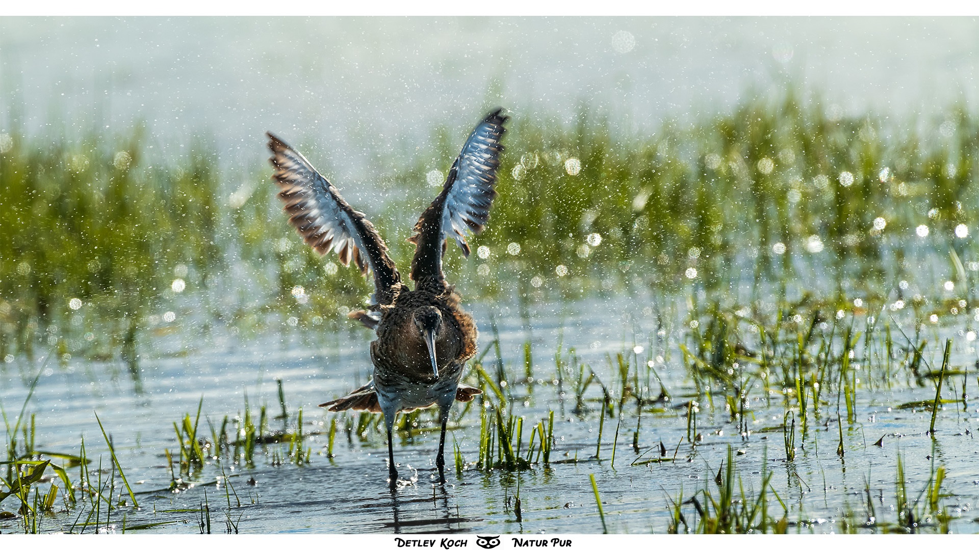 Badende Uferschnepfe im Ochsenmoor - Sieht teilweise wie ein Ballett aus.