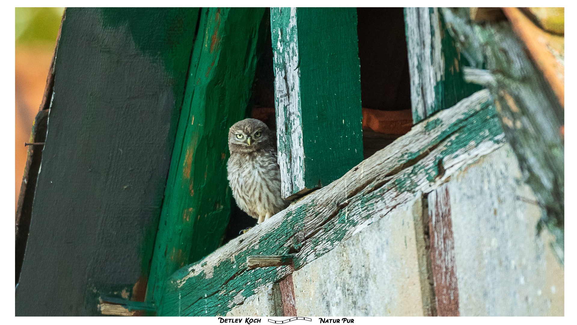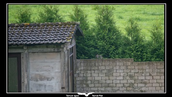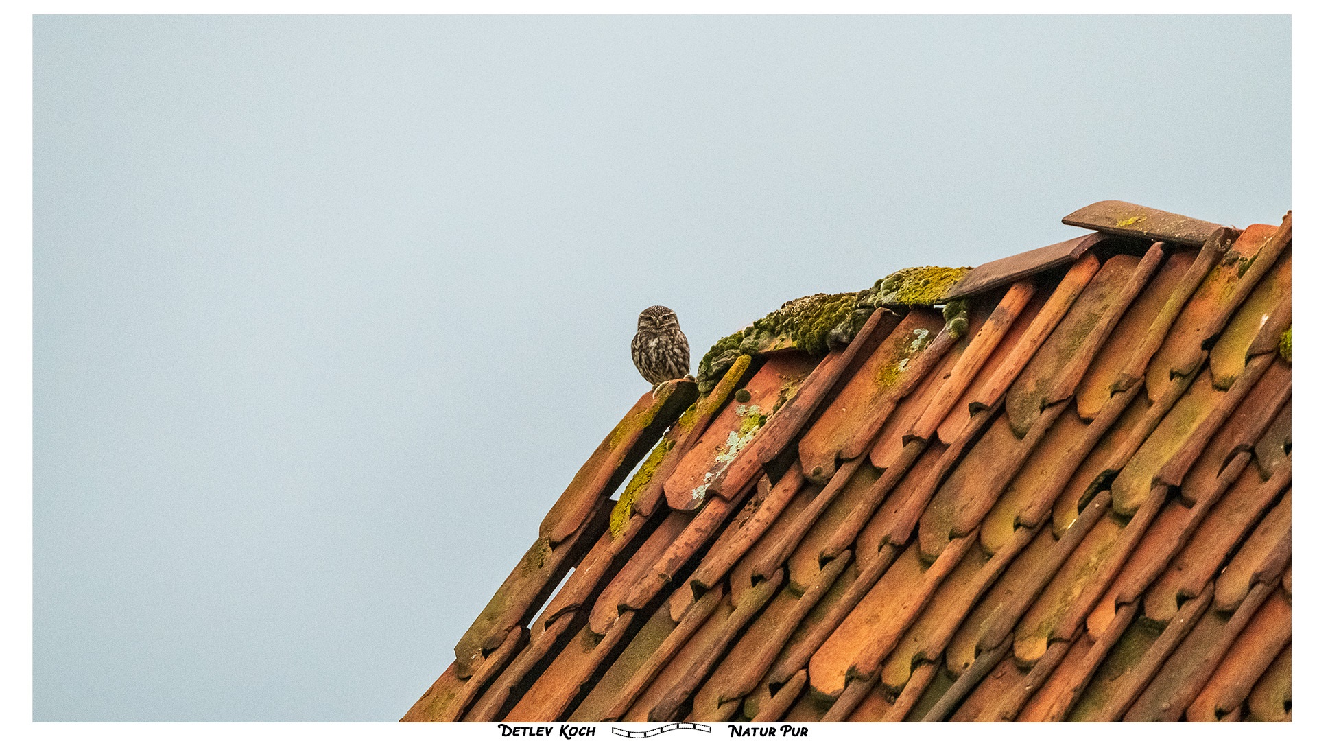Steinkauz bei uns zu Hause - Neuankömmling bei uns, der erste der beringt ist. Er war so lange auf dem Dach zu sehen, bis der Bussard kam.
