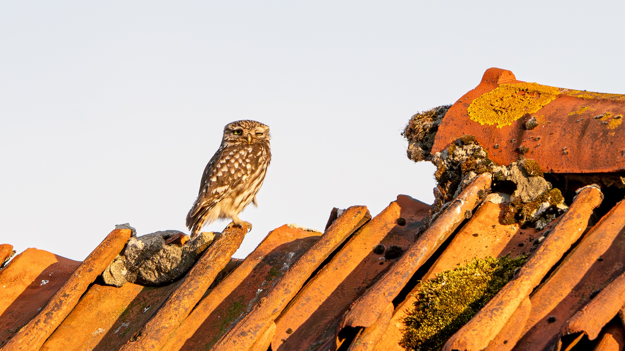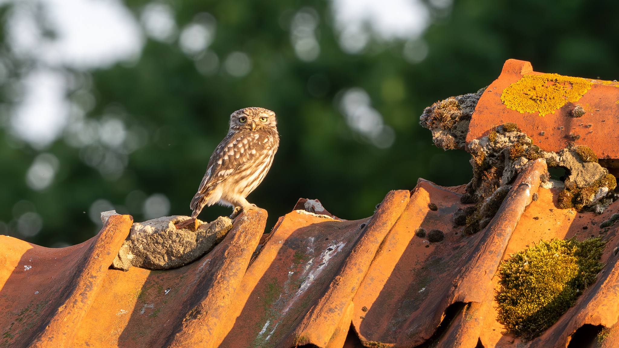 04.07.2025 - Steinkauz (Athene Noctua) auf dem Scheunendach. Gleich 4 Steinkauze waren zu sehen. Fotografieren konnte ich jedoch nur 2.