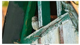 18.07.2025 - Steinkauz (Athene noctua) - .. Und der Erzfeind- Ein Sperber (Accipiter nisus) - So lange der Sperber anwesend war, hat sich der Steinkauz auf der Leiter versteckt.