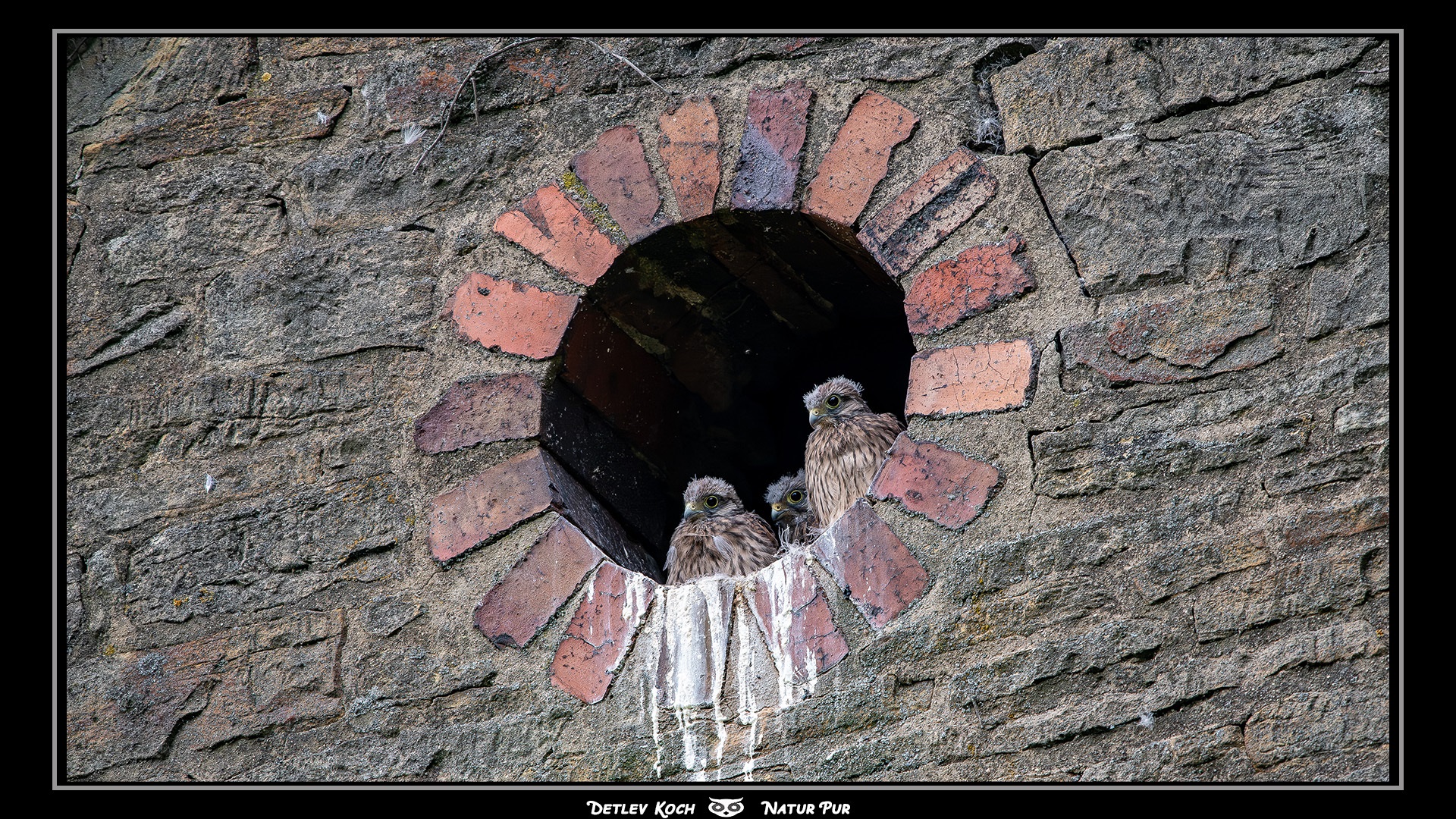 Der Turmfalke (Falco tinnunculus) - 3 Jungvögel noch mit Flaum, der sicherlich bald auch sich lösen wird.