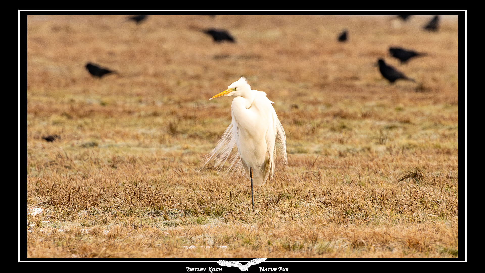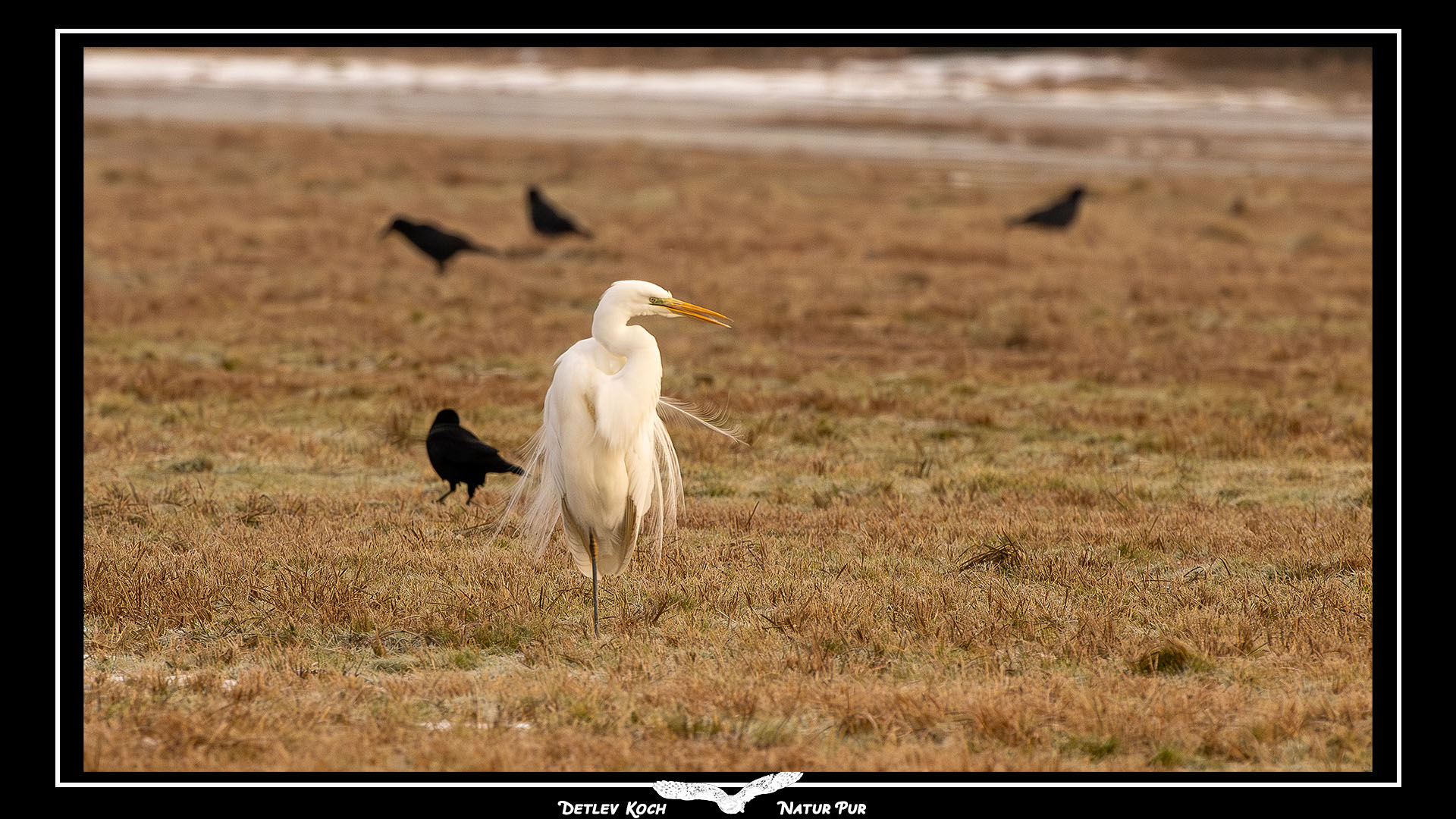 Wanderfalke, Schwarzkehlchen, Silberreiher, Großer Brachvogel, Haubentaucher, Kiebitz, Krickente - Alle zusammen im Ochsenmoor am Dümmer im Februar 2023