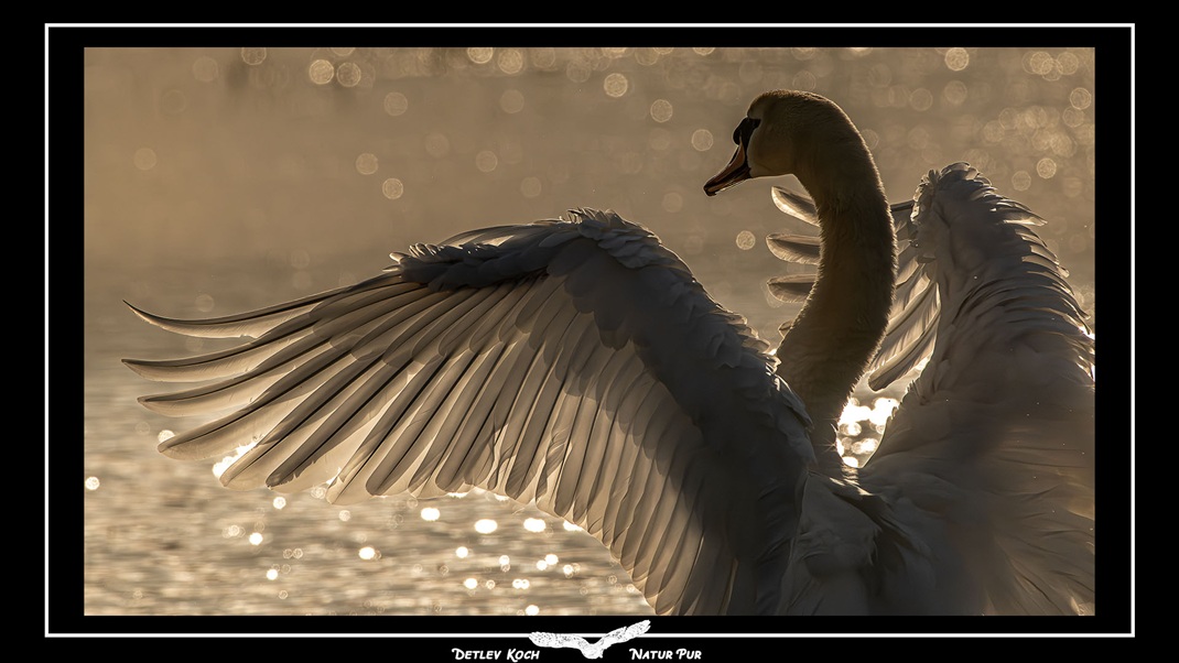 Der Höckerschwan (Cygnus olor) Die ersten Schwäne sind im Ochsenmoor am Dümmersee angekommen. Die Vogelwiesen selbst sind noch komplett unter Wasser und somit perfekter Platz für alle Wasservögel. Die beiden Schwäne waren ausgiebig am Baden.