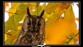 Waldohreule (Asio otus) - Markant sind die Federohren, die sie allerdings auch anlegen kann. Die Eule ist streng nachtaktiv und lebt eher heimlich, trotzdem kann man sie teilweise gut an ihrem Gemeinschaftsschlafplatz im Winter beobachten.