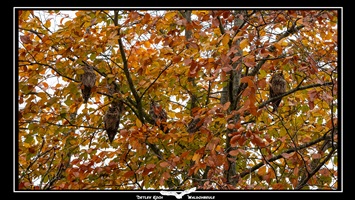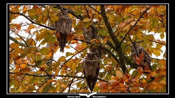 Waldohreule (Asio Otus) - Es ist Herbst, kurz vor dem Winter und da sind sie wieder, die Waldohreulen in ihrem Ruhebaum. Aufgenommen im November 2025.