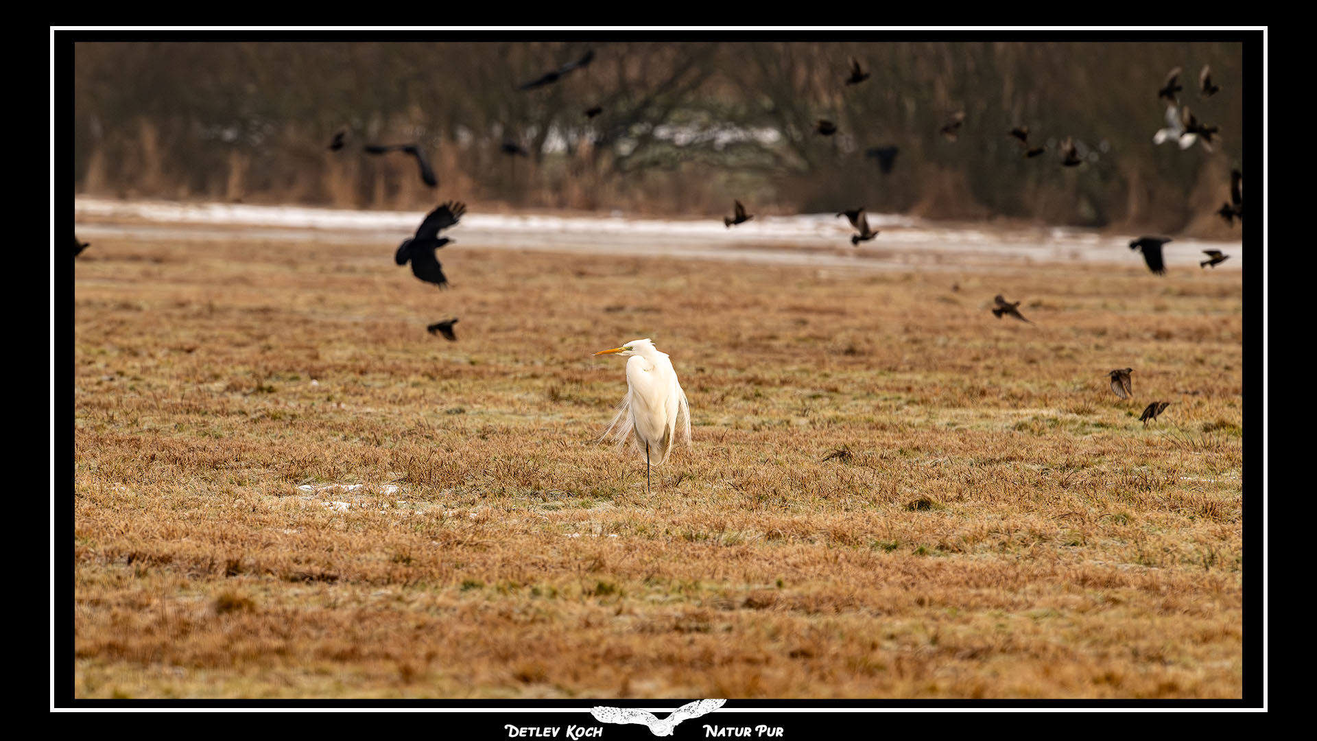 Wanderfalke, Schwarzkehlchen, Silberreiher, Großer Brachvogel, Haubentaucher, Kiebitz, Krickente - Alle zusammen im Ochsenmoor am Dümmer im Februar 2023