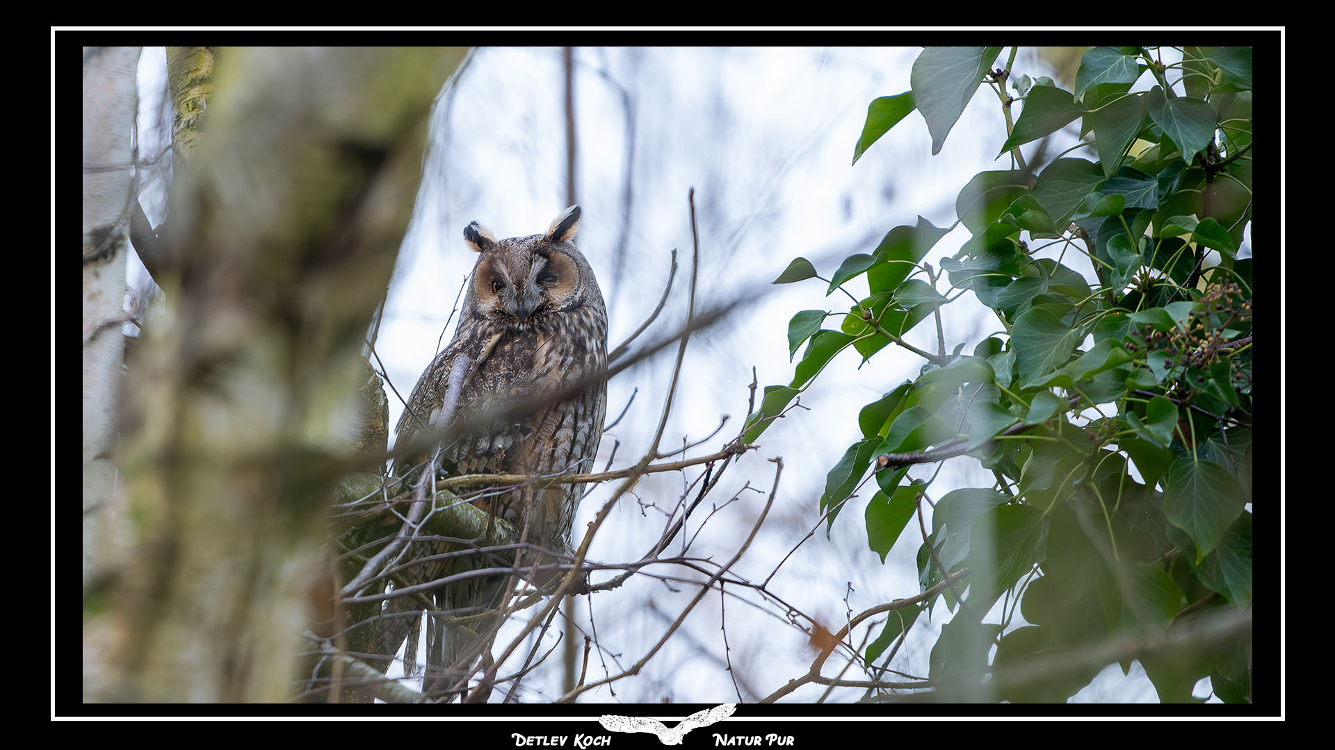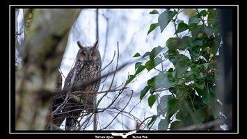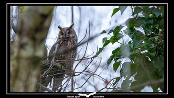 Waldohreule (Asio Otus) - Freisitzend und bei besserem Wetter im Ruhebaum
