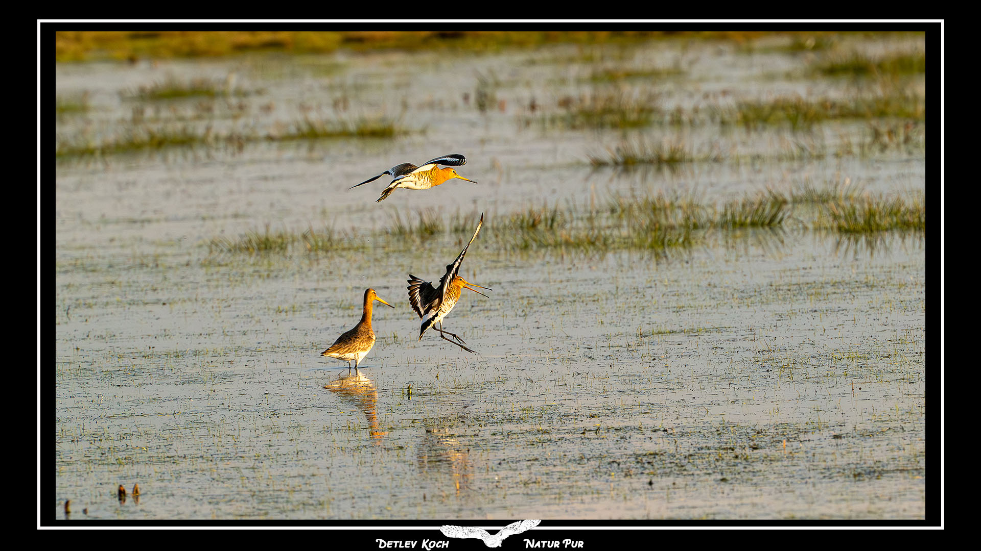 Morgens im Ochsnemoor. Seeadler, Uferschnepfen, Brachvögel, Rotschenkel, Kampfläufer, Rohrammer, Schafstelze, Höckerschwan, Star, Bekassine