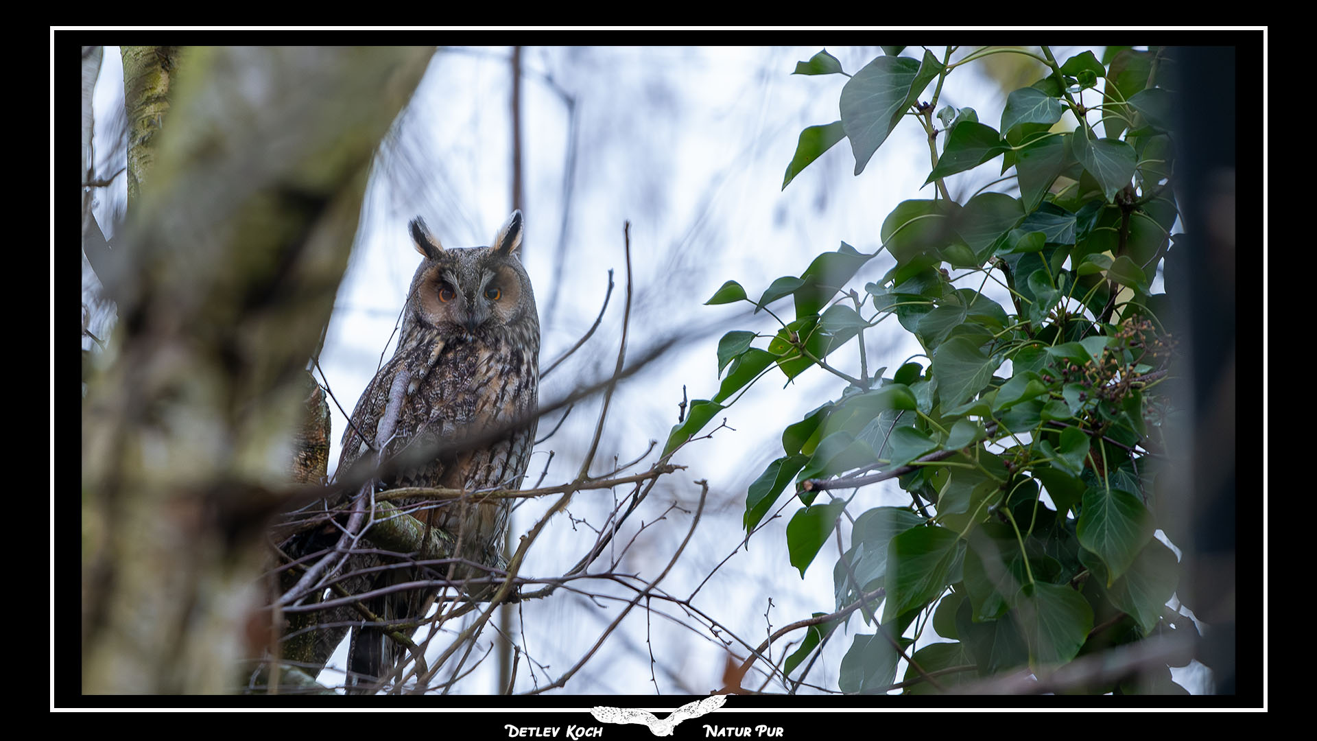 Die Waldohreule (Asio otus) Die Waldohreule ist etwas kleiner und schlanker als der Waldkauz. Typisch sind die auffälligen, großen, oft steil aufgerichteten Federohren und die orangegelben Augen.